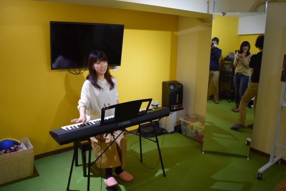 そしてピアノを弾いているこちらの方が、親子リトミック教室の先生である吉田かおりさんです。